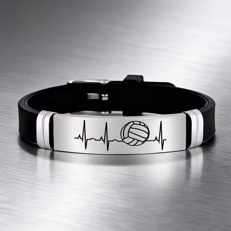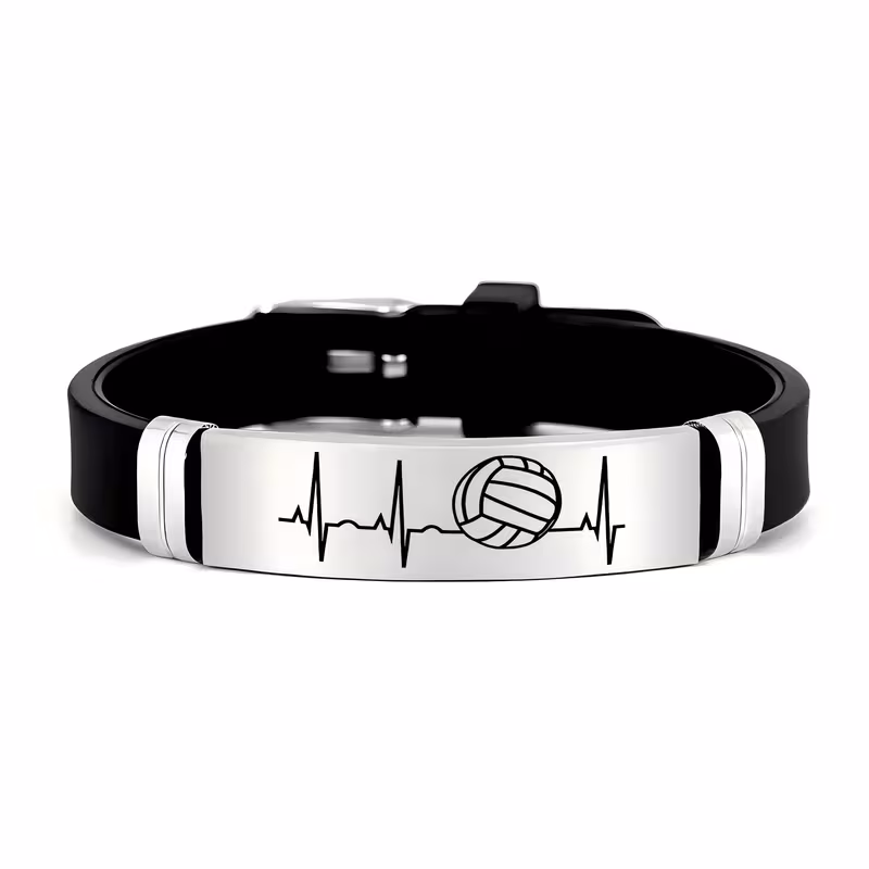 سوار سيليكون من ستانلس ستيل بنمط كرة الطائرة، هدية مثالية لعشاق اللعبة في الأعياد وأعياد الميلاد.